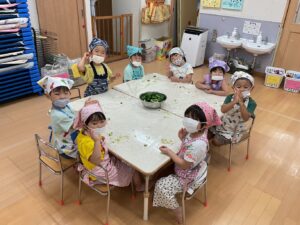4.5歳児さんが、給食の下ごしらえのお手伝いをしてくれました!