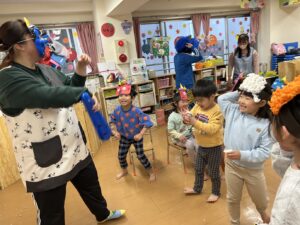 鬼はそと~!福はうち~!今年も元気な声が保育園に響きました。おもいきり鬼に豆をぶつけて、みんなの心の中の悪い鬼も退治できたかな?